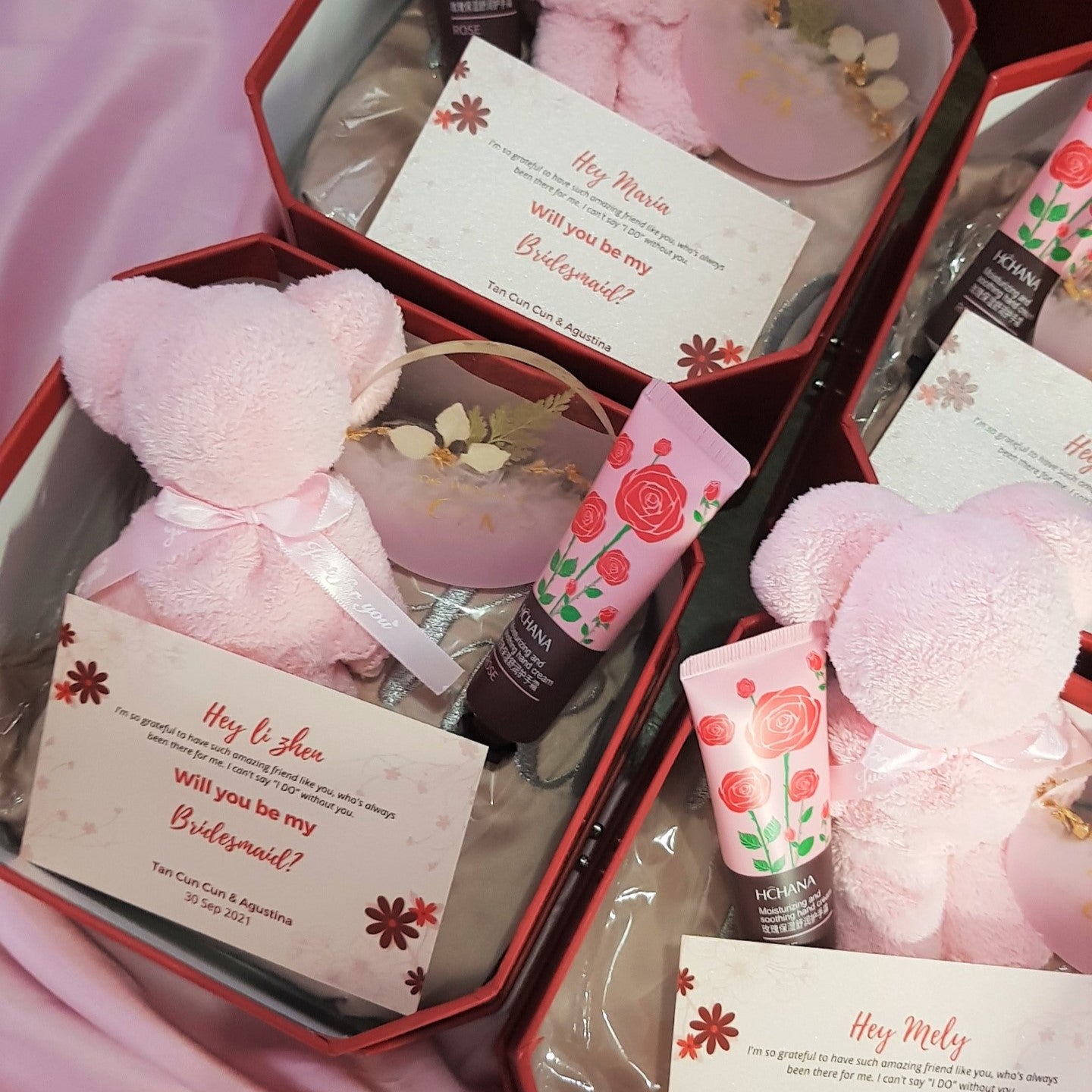 Pamper your girls with your choices of items. We know Bridesmaid's hamper is one of the checklist, so we help you to take care of this in a way they feel valued while you can remain focus on the rest of the wedding's checklist. Items are fully customizable upon discussion.