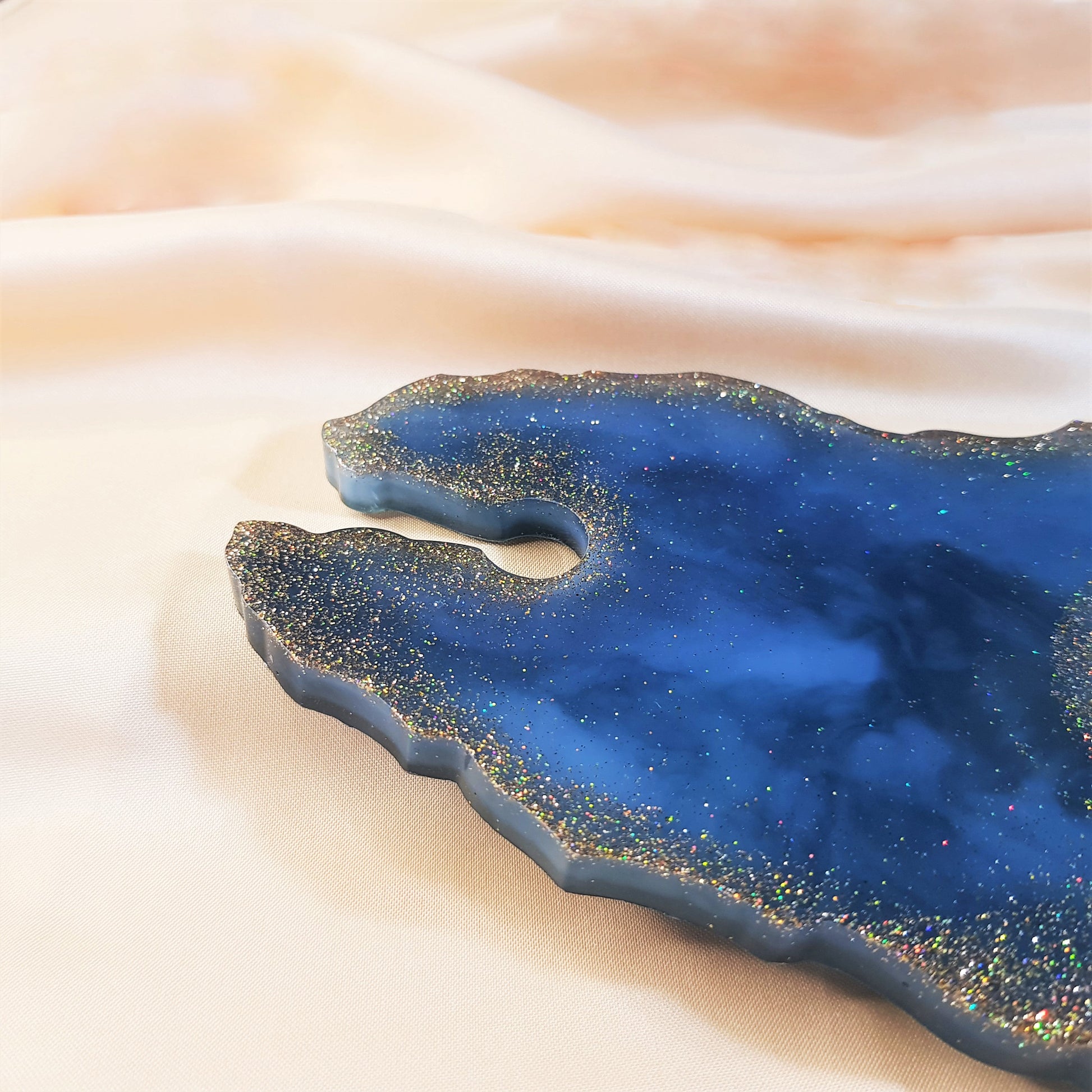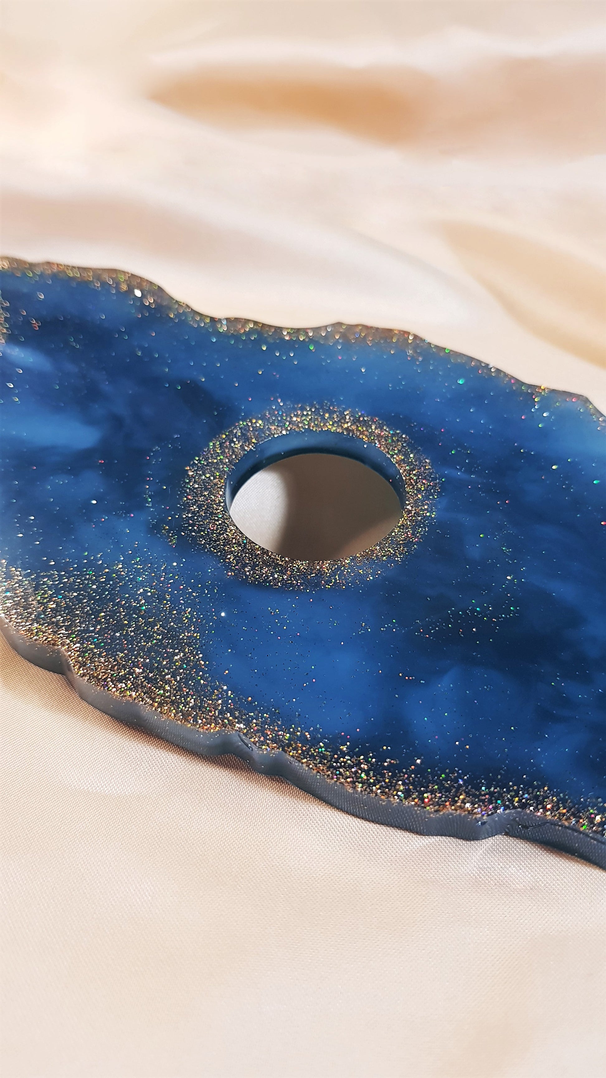 For a more dressed up dinner setting, place the marbled-blue, speckled with gold glitter side facing upwards.